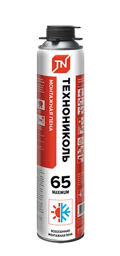 Пена монтажная профессиональная ТЕХНОНИКОЛЬ 65 MAXIMUM всесезонная представляет собой однокомпонентный полиуретановый материал в аэрозольной упаковке. Монтажная пена отличается высокой эластичностью, контролируемым объемом монтажного валика, высокими показателями тепло− и звукоизоляции, активным первичным и умеренным вторичным расширением.